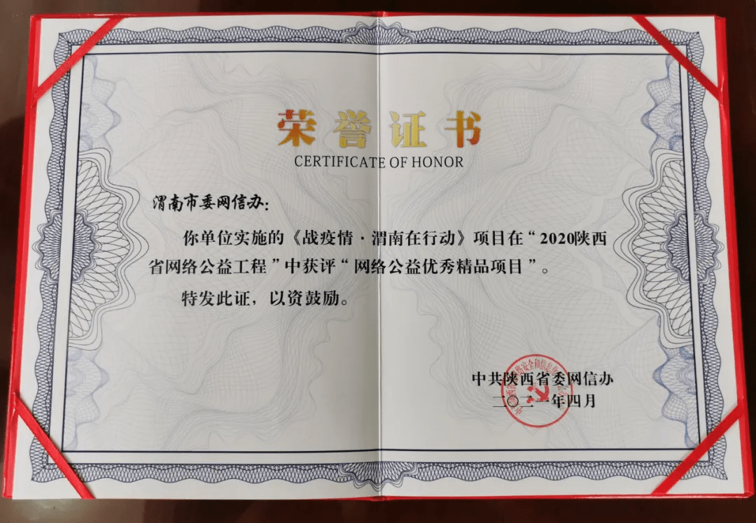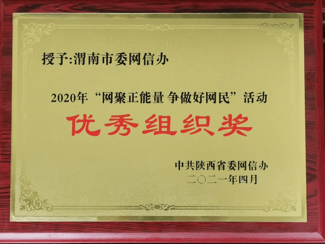 4月21日下午,“2020陕西好网民工程”和“网络公益工程”年度总结发布活动顺利召开。渭南市委网信办推荐实施的“战疫情·渭南在行动”获得了“陕西省网络公益优秀精品项目”奖、《精彩大荔》获得了“好网民工程品牌”传播新风奖,渭南市委网信办获得优秀组织奖,渭南左渭斌、刘媛2人被评为“陕西好网民”,并作为领奖代表登台领奖!