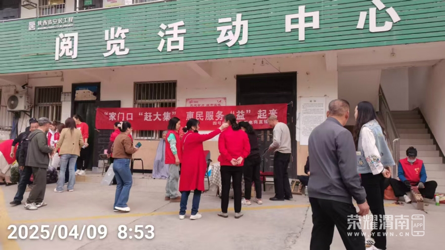 2025年4月9日上午8:50左右渭南青年志愿服务队文艺小分队的11位志愿者来到渭南市站南街道民生苑三期公益便民“家门口‘赶大集’ ——惠民服务‘益’起来“活动现场。