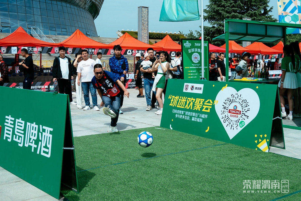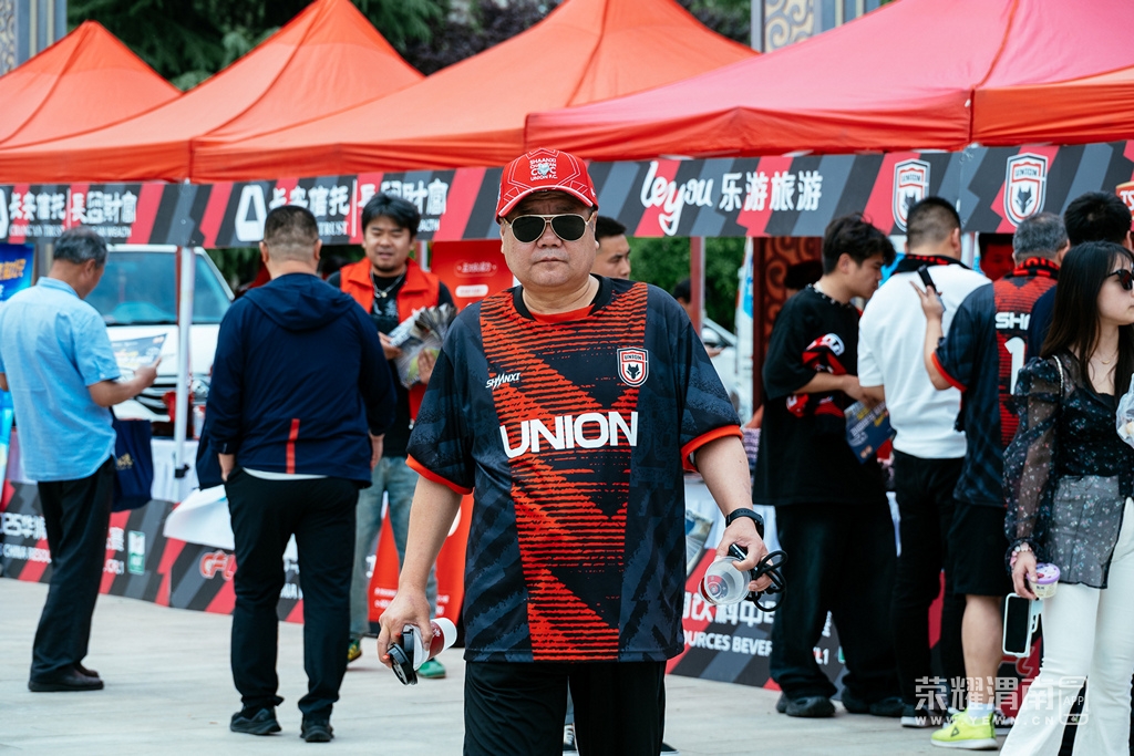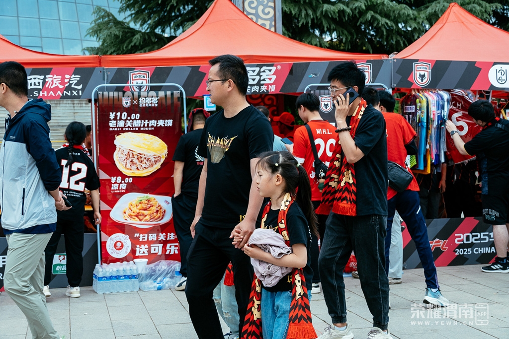 2025年4月27日,陕西省渭南市高新区,2025华润饮料中甲联赛第6轮陕西联合月亮泊VS石家庄功夫赛前球迷及商户等。