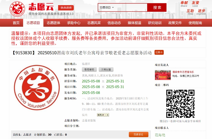 2025年5月10日渭南市刘氏老年公寓母亲节敬老爱老志愿服务活动总结